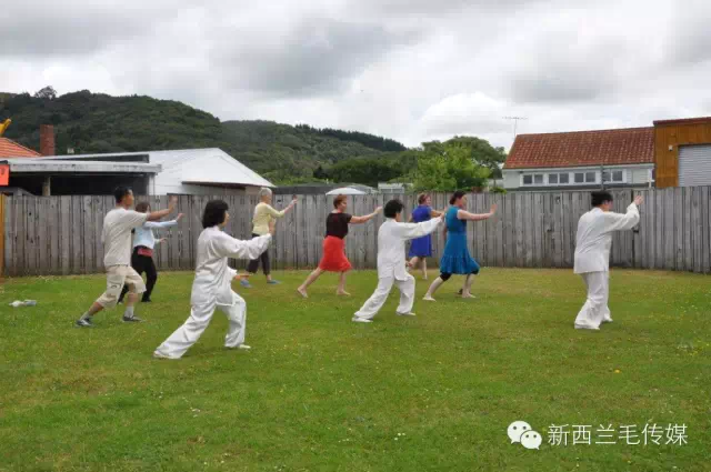 Kiwi们同张慧金晓鸣夫妇学打太极拳