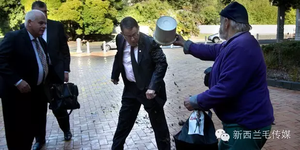 开庭前,发生了一个小插曲。 Banks先生在走近奥克兰高院时被人泼污物,污物打中他的脸和胳膊,衣衫也被弄脏。他不得不回家换衣服,庭审因此延误90分钟。