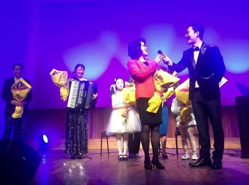 毛芃向特邀演出嘉宾-吉他手Danny Gao献花