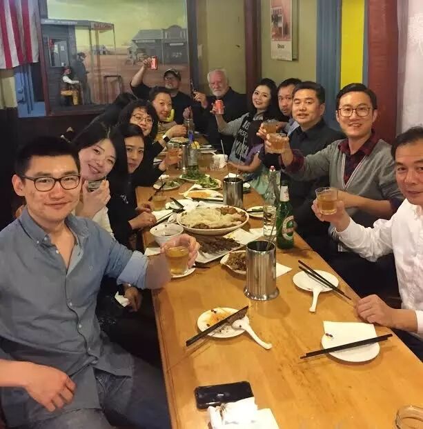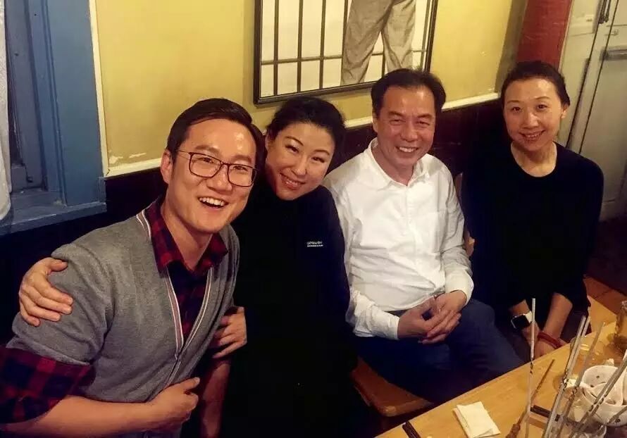 庆功宴上。左起:王浩、宫晨、Danny和Grace