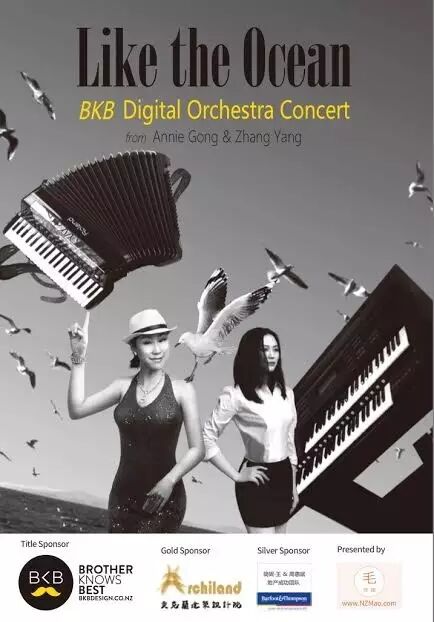|2016年9月4日下午,一场由新西兰毛传媒团队主办的“Like the Ocean ” 数码交响音乐会在奥克兰Town Hall 音乐厅举行。数百名听众冒着小雨赶到音乐厅,一起聆听由新西兰本地年轻的华人音乐家宫晨演奏数码手风琴和张洋演奏双排键数码管风琴。