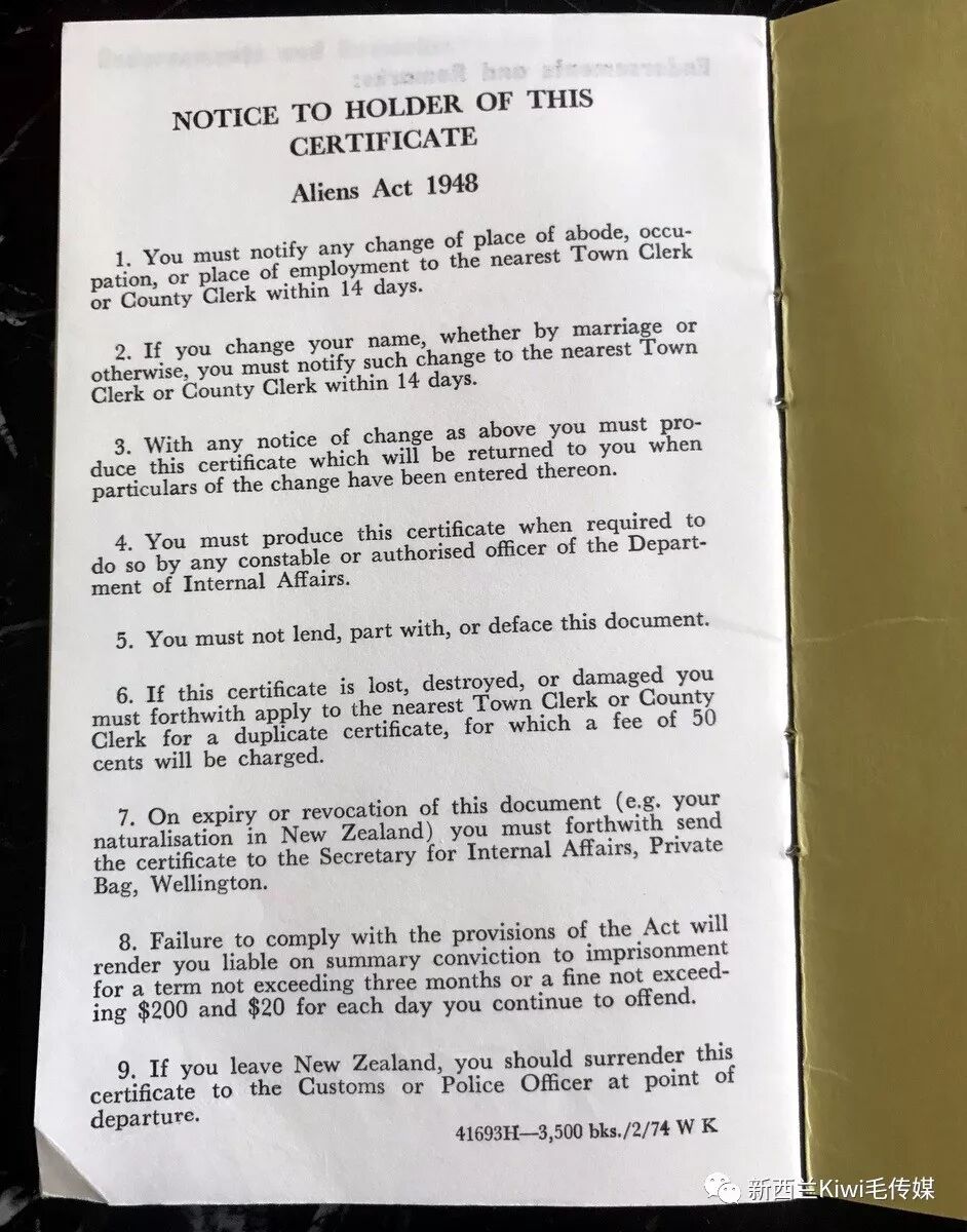 不过,那时候还是实施着 Aliens ACT 1948法(1948外来人法),根据这个法令,所有非英国属民,都要持一本外来人登记证。