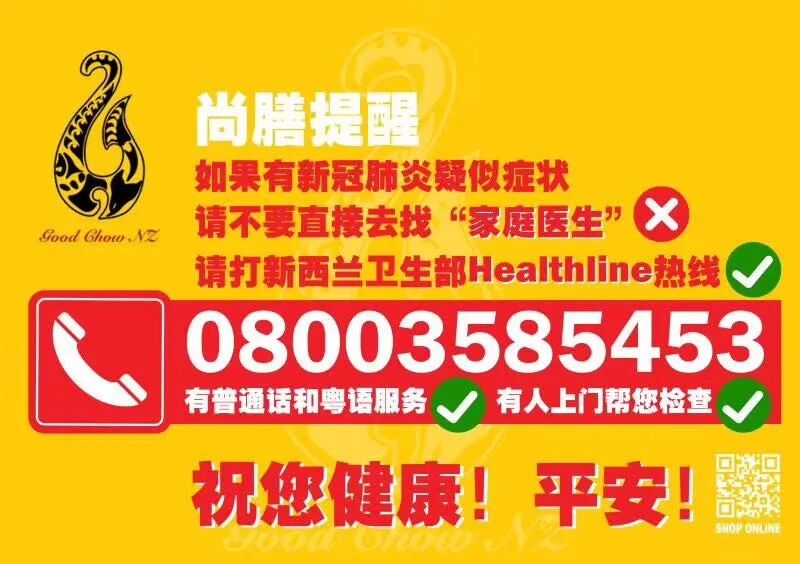 新西兰的朋友请注意,有疑似症状不要直接去“家庭医生”那里看病,请打电话,有人上门给你看病。