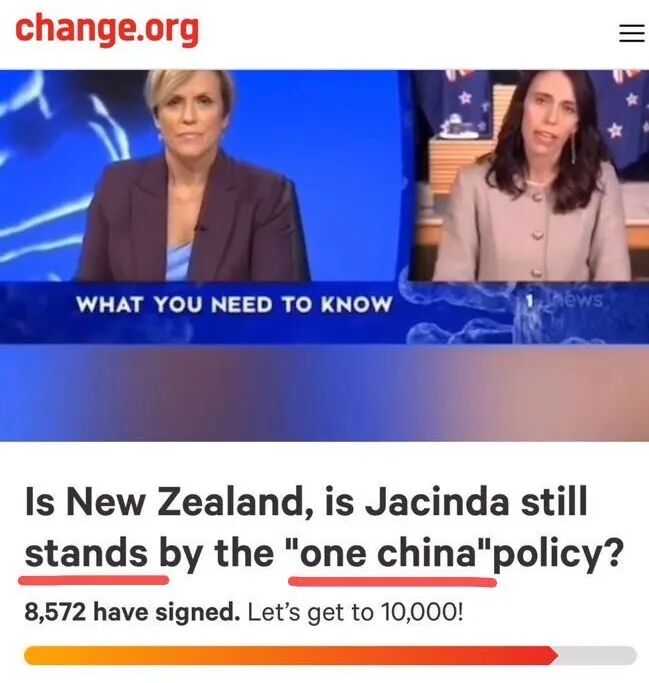 今年是新西兰大选年,这个请愿书把新西兰总理的言论同种族主义关系挂钩,还同大选扯到了一起,又是何故呢?总理把台湾和香港说成“COUNTRY” ,怎么就成种族主义行为了?在极端讲究政治正确的新西兰,一国领袖想靠搞种族主义赢得选票?不知这名请愿书发起人在新西兰定居了多少年,对新西兰政治了解有多少。