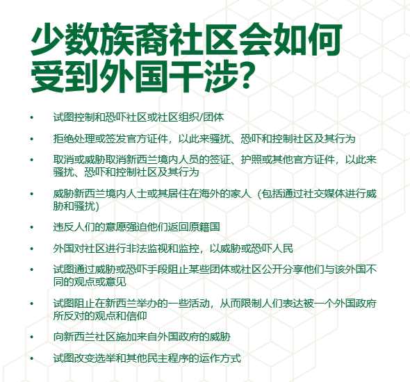 去年(2025年),新西兰政府通过《犯罪法》(Crimes Act)框架下的新立法(《2025年犯罪(反外国干涉)修正案》),加强了打击外国干涉的法律力度。
