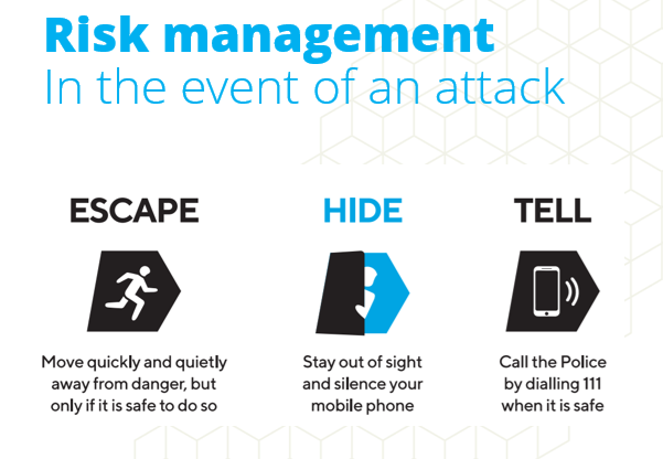 Phil McKee 还提醒大家在遭遇极端暴力事件时如何自我保护。