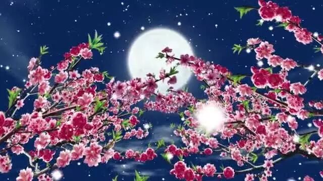 一向很接地气、擅长和乐于写描写新西兰乡间生活的约翰陈不失时机地发来一幅动态图,圆圆的明月下,一排桃花在快乐地跳动。