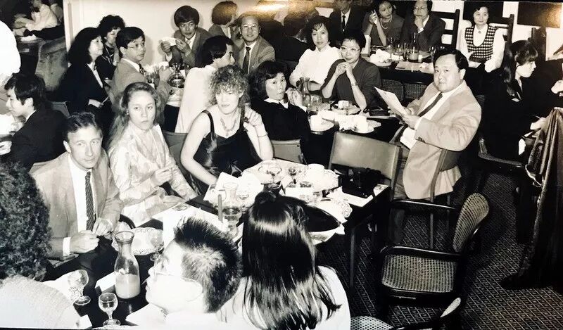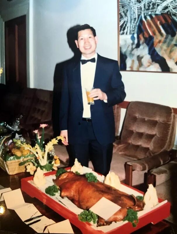 曼瑛:这是1987年我们新西兰中文教育基金进行筹款拍卖活动时拍的。曹玉堂先生是金马饭店的老板,一个非常热心的人。为了支持我们的筹款拍卖活动,他送来一只乳猪参加拍卖,还帮助主持拍卖,因为我们也不懂得怎样拍卖。