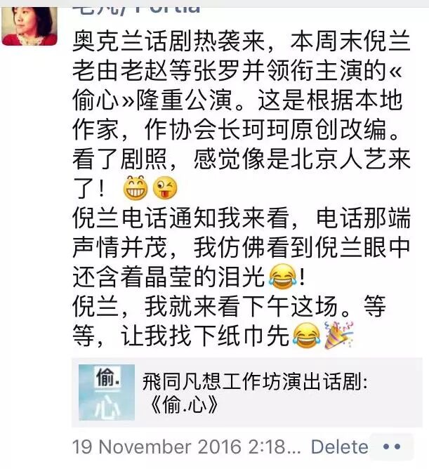 下面这段话是我2016年11月看这部话剧前发在朋友圈的。